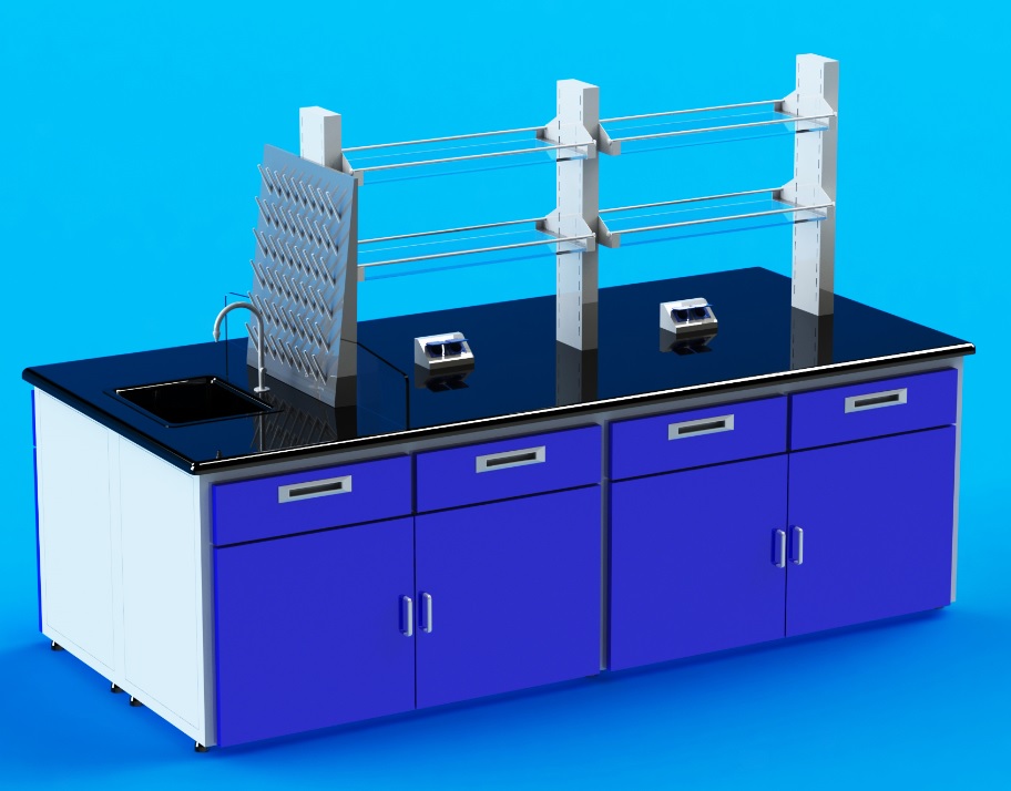3. wall cabinets, reagent racks, pegboard, cold water taps(materials: brass with epoxy powder coating or stainless steel) , cold and hot water taps(materials: brass with epoxy powder coating or stainless steel), polypropylene sink, table eyewasher, emergency air shower, power sockets, etc.